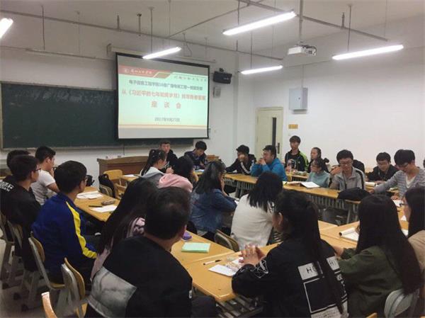 2017年9月27日晚上7:40广电一班全体成员在1号楼409教室开展"为学思践悟领袖青春故事,从《习近平的七年知青岁月》中找寻青春答案"的团学活动。本次活动由团支部书记张强主持召开,广电一班全体成员参加了活动。