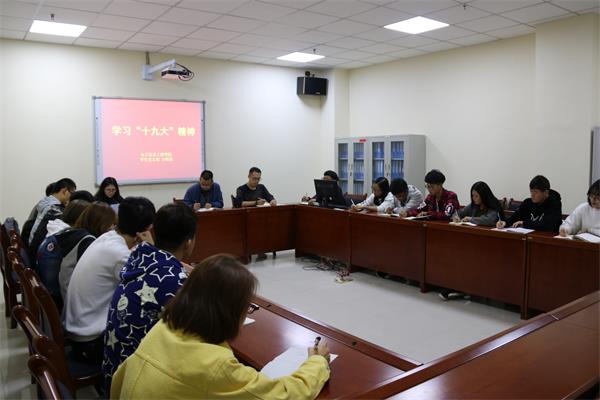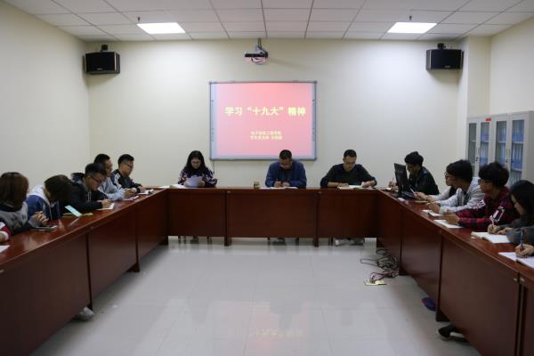 2017年10月19日下午,电子信息工程公司员工党支部在公司会议室召开员工党员学习十九大报告会议。公司党总支副书记宁学君,党总支副书记、副经理杜萍出席了会议,参加会议人员有辅导员陈艺溶老师、全体员工党员及员工会干部。