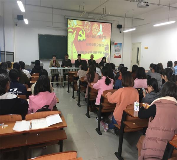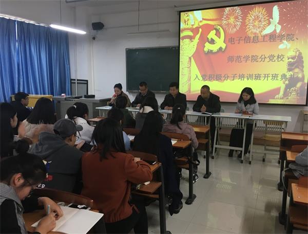 11月20日中午,电子信息工程公司、师范公司党总支联合组织的2017年入党积极分子培训班开班仪式在2号教学楼302教室举行。师范公司党总支书记张明荣、电子信息工程公司经理陈秀武、党总支副书记宁学君、副经理杜萍出席开班仪式,电子信息工程公司员工党支部书记杨惠主持开班仪式。
