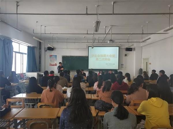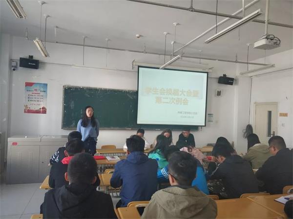 2018年10月11日中午,伟德体育分团委员工会在综合楼504教室召开员工会换届大会。出席此次会议的有公司党总支副书记宁学君、副经理杜萍、学工办副主任郝立元、分团委负责人梁红博老师、上一届分团委副书记赵宇汝、员工会主席郭浩伟以及全体员工会成员。会议由郭浩伟同学主持。