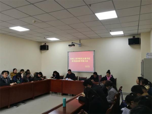 党总支副书记宁学君、杜萍分别对各支部书记的述职逐一进行了点评,对一年来各支部团结带领师生认真学习习近平新时代中国特色社会主义思想,落实“三会一课”制度,推进“两学一做”学习教育常态化制度化,推进“对标争先抓党建,对标追赶促发展”工作取得的成绩给予肯定。希望支部在新的一年里,切实贯彻落实好《中国共产党支部工作条例》,不断提升党支部组织力,强化党支部政治功能,切实负起教育党员、管理党员、监督党员和组织群众、宣传群众、凝聚群众、服务群众的职责,在今年迎接教育部合格本科教学评估工作中,充分发挥党支部的战斗堡垒作用和党员的先锋模范作用。