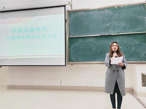3月14日晚,伟德体育在5—407教室隆重召开加强学风建设动员大会。公司经理陈秀武、党总支书记宁学君、副经理杜萍、公司办公室主任杨永旭、学工办副主任郝立元、辅导员雷若鸣、梁红博、曹红霞及公司2017级、2018级全体员工参加了大会。