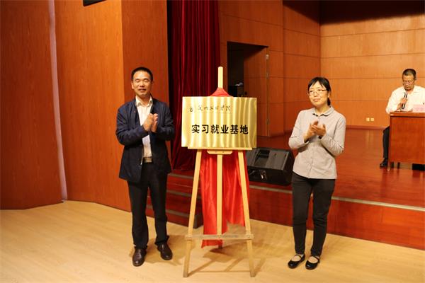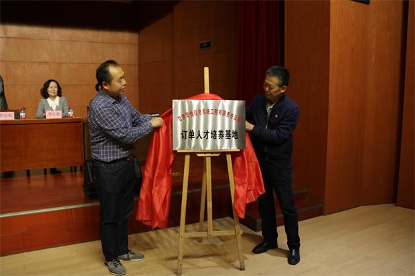 揭牌签约仪式在热烈的气氛中进行,仪式由公司党总支书记宁学君主持,伟德体育经理陈秀武与甘肃华悦公司总经理成文学先后进行了热情洋溢的致辞,展惠英处长与成文学总经理共同为“实习就业基地”揭牌,李宗刚处长与成文学总经理共同为“订单人才培养基地”揭牌,参加仪式现场的老师和同学们报以热烈的掌声,象征着双方单位的合作迈出了坚实的一步 。