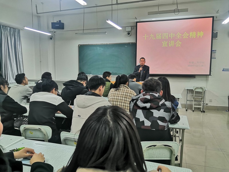 2019年12月18日晚,公司党总支组织十九届四中全会精神学习宣讲会,公司员工党员和入党积极分子参加学习,党总支书记宁学君作了宣讲。