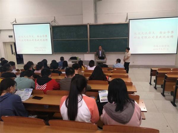为推动公司就业工作,提高毕业生就业率,6月1日晚上7点,伟德体育组织天水华天科技股份有限公司和西安华羿微电子股份有限公司两家单位来院专场招聘,公司经理陈秀武教授主持招聘宣讲会,公司班子成员、毕业班班主任、16级毕业班员工60多人参加了招聘宣讲会。