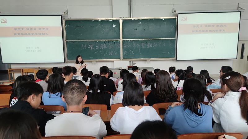 2021年5月18日,公司邀请校团委书记安靖在5—407教室为公司入党积极分子作“学党史 强信念 跟党走 做青年员工党史领学人”的专题辅导讲座。
