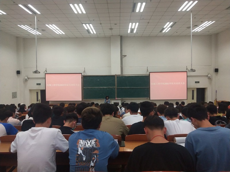 2021年5月31日晚,伟德体育在5-407教室召开了征兵入伍动员大会,公司党总支书记宁学君,副经理杜萍,公司男生共240余人参加了大会。