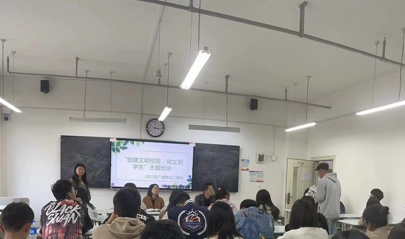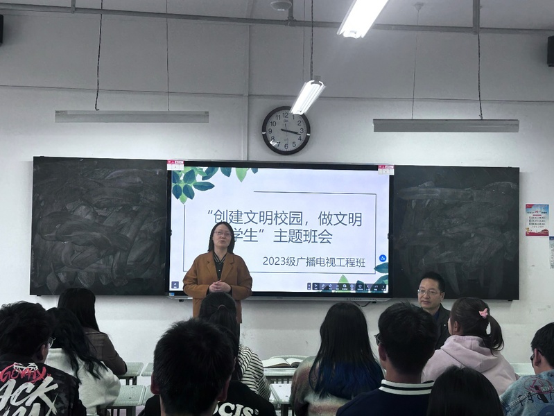 刘畅副董事长听取了23级广播电视工程班“创建文明校园,做文明员工”主题班会后,希望同学们能通过此次主题班会,培养良好的学习素养,为自己未来打下坚实的基础。她指出,好的学习生活习惯等都对同学们的健康成长有着至关重要的影响,好的待人接物习惯也能帮助同学们更好的融入社会,塑造自身的良好形象。
