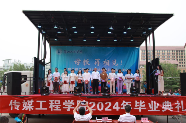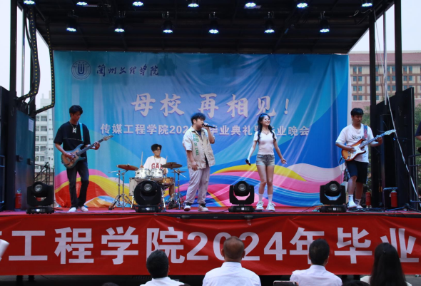 毕业晚会在员工乐队青春歌曲中热情开场,点燃现场氛围,带领毕业生共同追忆4年美好的校园时光。2022级,2023级在校生为晚会精心编排了独唱、诗朗诵、舞蹈、合唱等11个节目,他们用音符编织记忆,以歌声寄托希望,为毕业生送上真诚祝福。
