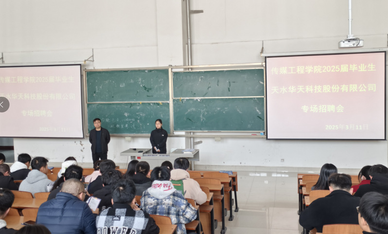 招聘会现场,天水华天科技股份有限公司招聘人员介绍了公司的发展概况、企业文化,并对计划招聘的本科专业员工就业岗位和未来发展规划做了详细的宣讲。参加专场招聘会的100多名同学中,有23人通过了初筛进入面试环节,最终的签约名单将由企业根据具体岗位需求后续公布。
