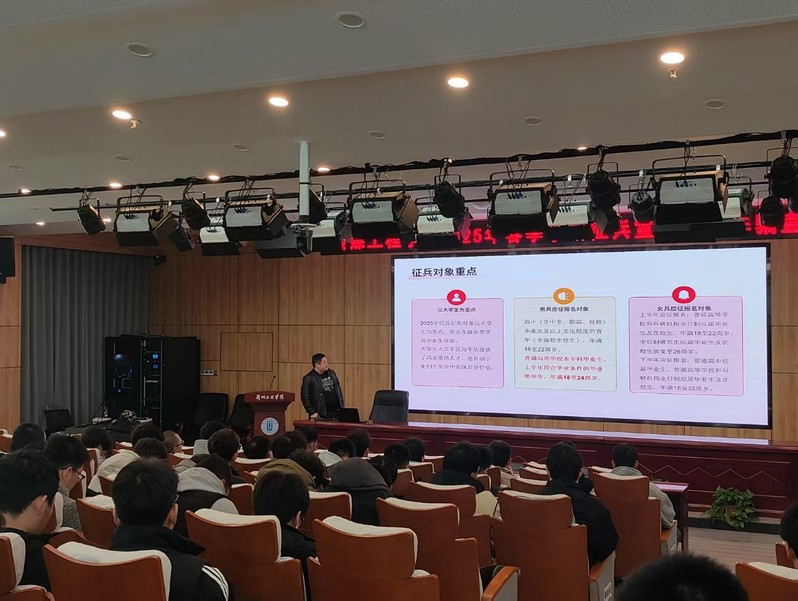 为积极响应国家征兵号召,鼓励广大青年学子投身国防事业,伟德体育于2025年3月28日在文昌楼303举办了2025年度征兵动员宣讲会。